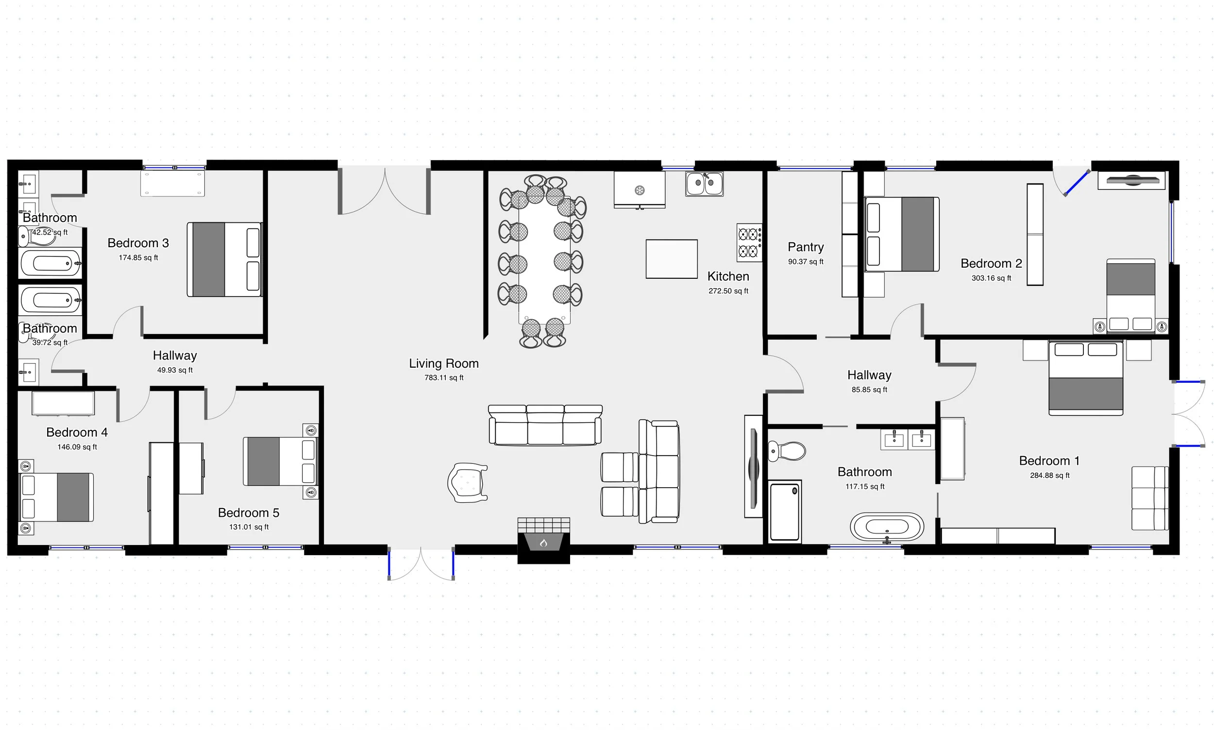 Bedrooms #1, #2, #3 and #5 have KING beds and Bedrooms #2 and #4 have QUEEN beds.